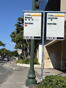アラモアナショッピングセンターからであればワイキキからの42番、そしてアラモアナショッピングセンター発の60番、65番、67番を利用します。